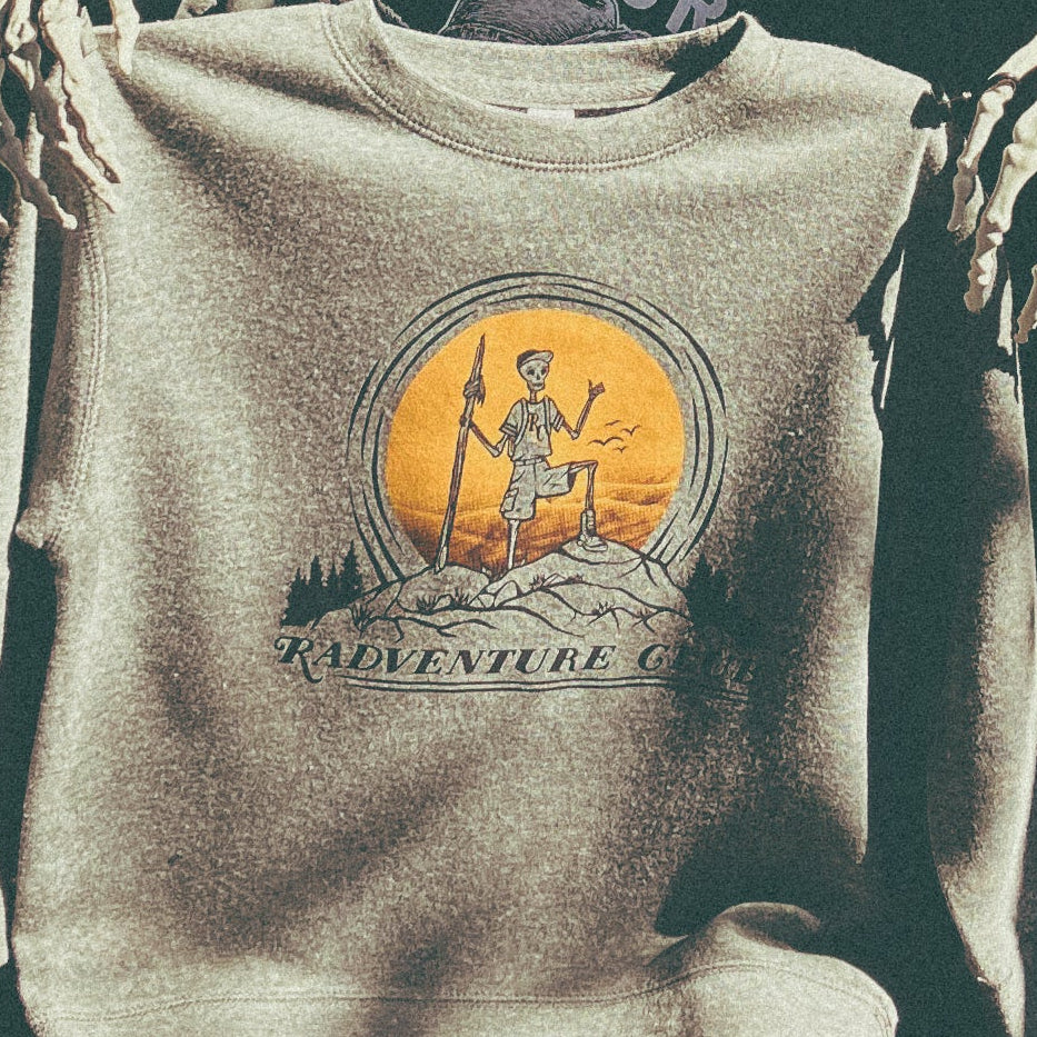 Let your young adventurer stand out with the Radventure Club Crew youth sweatshirt! Featuring a playful skeleton design, this cozy crew neck sparks imagination and fun on every outing. Perfect for kids who love exploring, it combines comfort with a cool, spirited look.