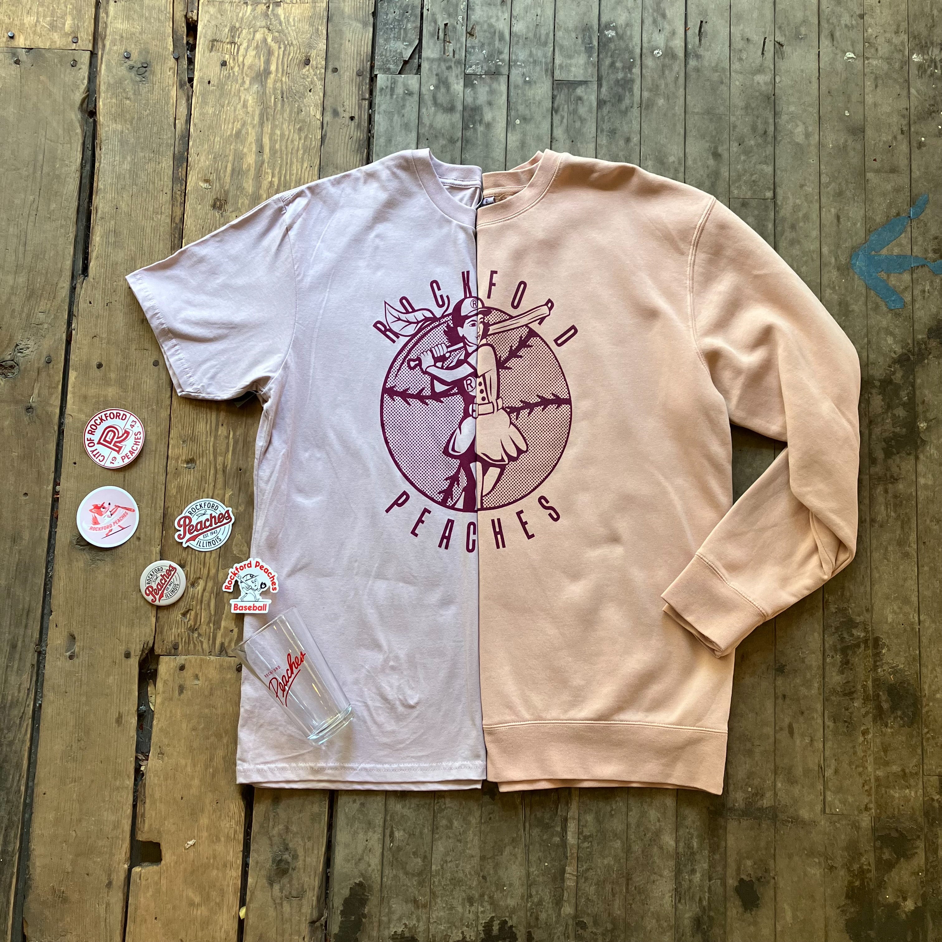 Celebrate the fun and fierce spirit of Rockford with the Rockford Peaches Batter Up Crewneck! Featuring a playful design of women in baseball gear ready to swing, this cozy crewneck brings vintage charm and sporty energy together. Perfect for fans who love to show off their team pride with a smile, it’s your go-to for comfort and style on and off the field. Batter up and make every day a game day!