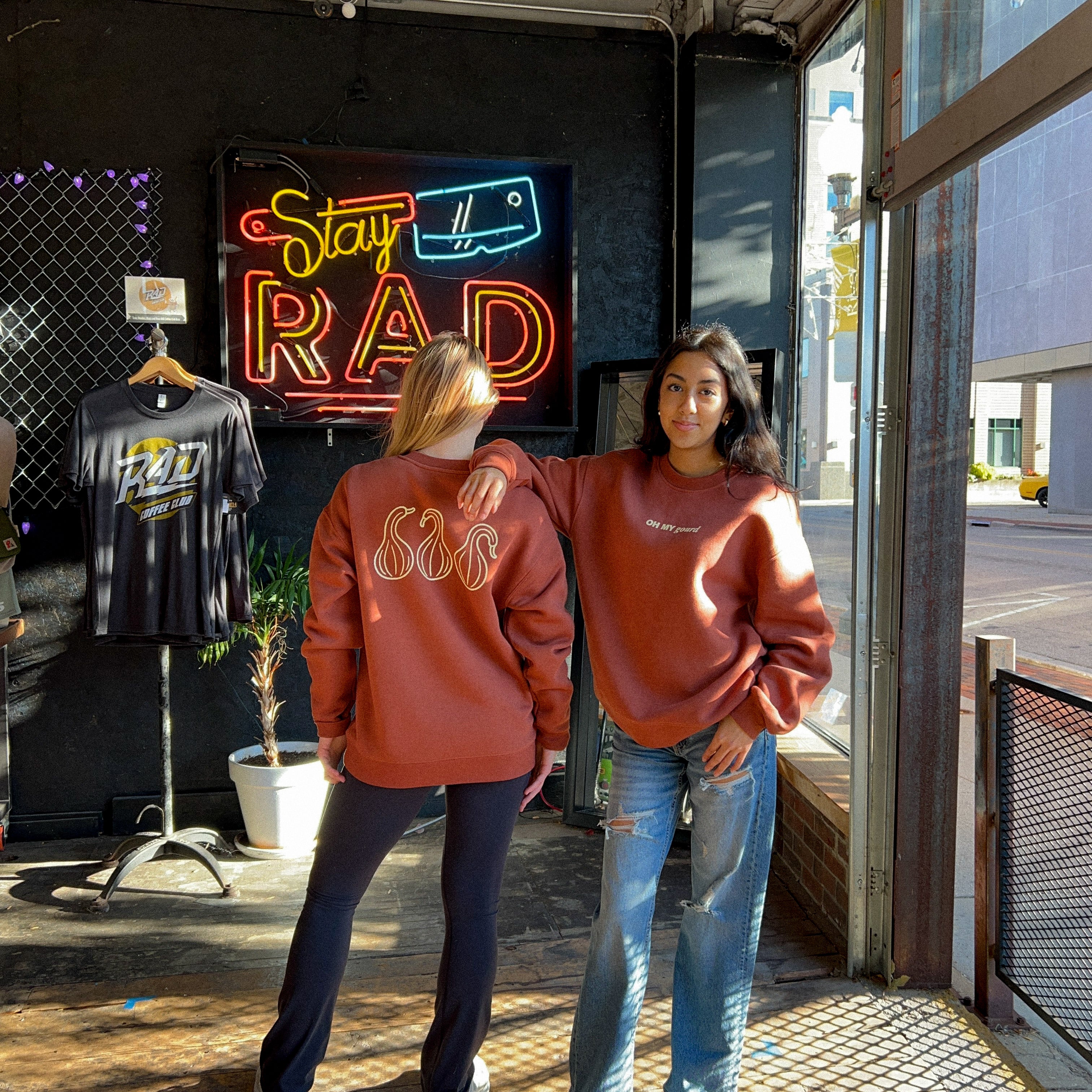 Fall has officially arrived, and so has your new favorite crewneck. The Oh My Gourd Crewneck features lettering across the chest that reads “OH MY Gourd,” paired with simple line art of three gourds on the back. Cozy, seasonal, and just the right mix of fun and festive, this sweatshirt is perfect for pumpkin patch outings, crisp autumn walks, or just sipping cider at home. It’s a limited seasonal staple you’ll want to wear all fall long.