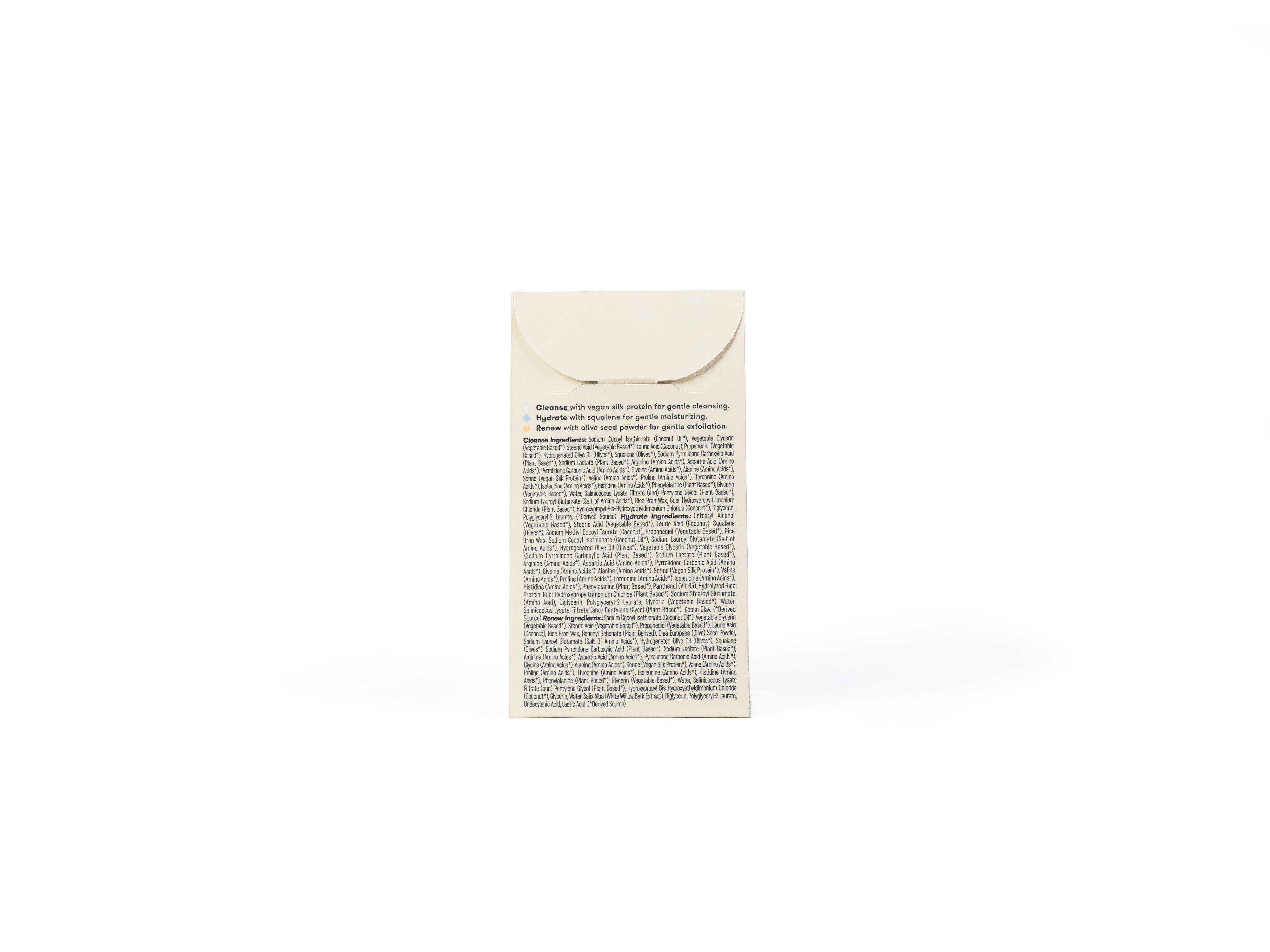 * HYDRATE: A super moisturizing cleanser with squalane and olive oil for a creamy lather that leaves skin plump and soft, helping remove makeup without harshness.