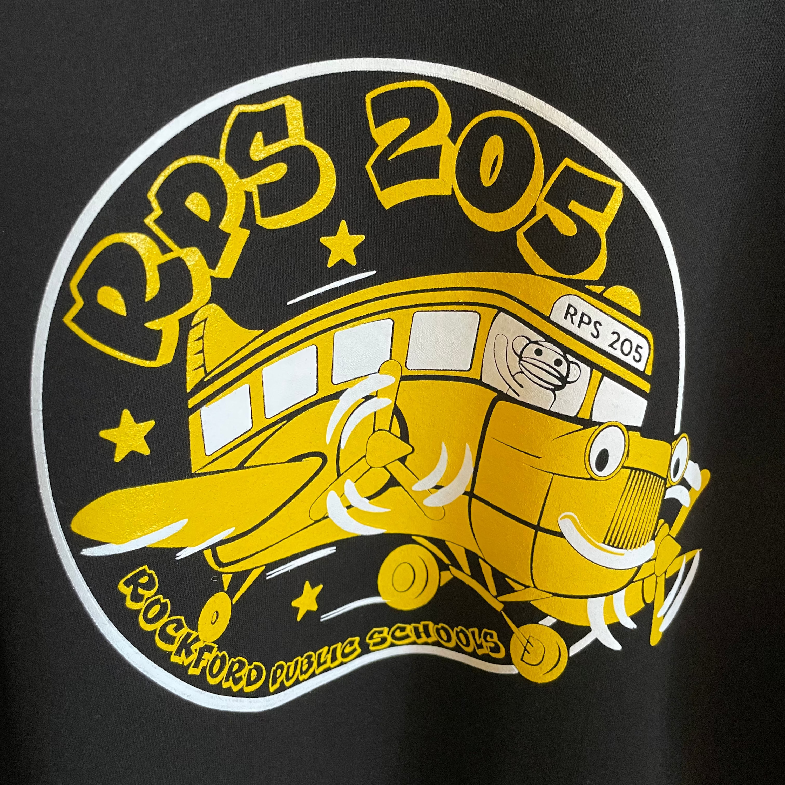Our latest tee takes you sky-high with Rockford’s favorite sock monkey behind the wheel of a wild yellow school bus turned propeller plane. With a nostalgic nod to imaginative field trips and out-of-this-world curiosity, this RPS design is a playful tribute to Rockford Public Schools and the journeys that start right here at home. When RAD's sock monkey takes flight, there’s no telling where you’ll end up (but it’s probably somewhere cool).