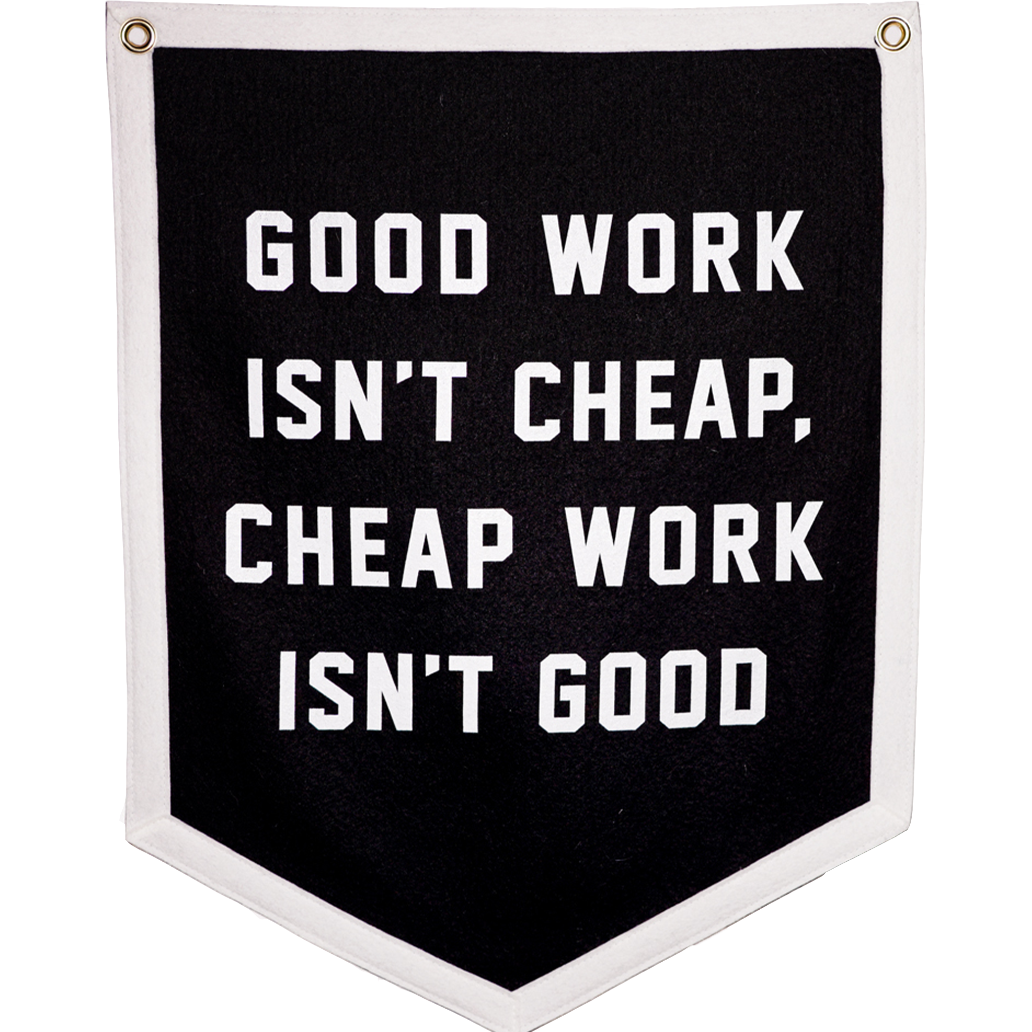 And cheap work isn't good. This black & white camp flag was made in collaboration with our friends at Promises Kept Events and is perfect for anyone who values a strong work ethic and taking the time to do things the right way.