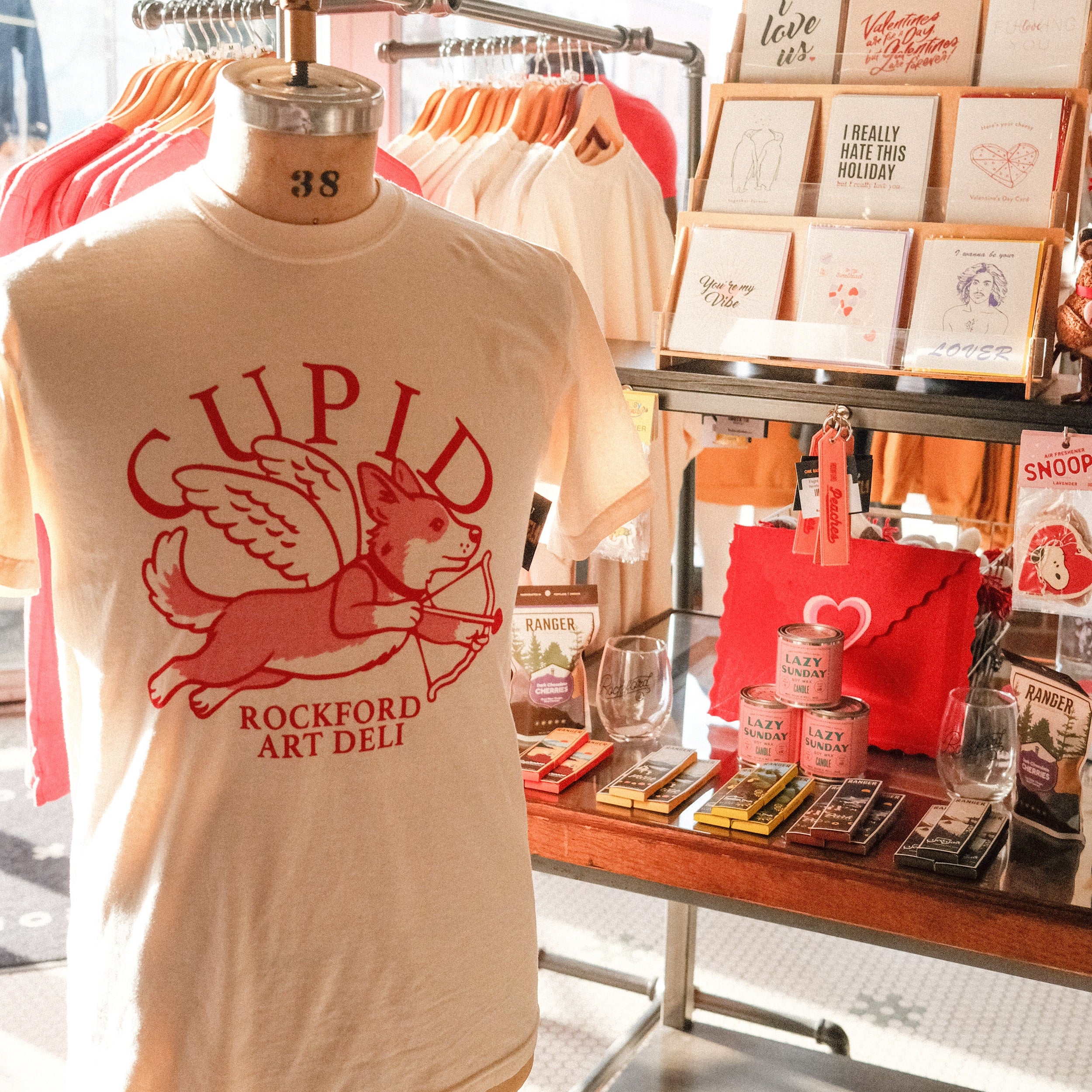 Meet Pepper in her cutest role yet...cupid with a mission! This tee celebrates your favorite shop sweetheart as she spreads love and joy, just like she does every day around Rockford Art Deli. Featuring bold, playful artwork that captures Pepper's heart-melting charm, it's the perfect pick for dog lovers and anyone who believes in spreading good vibes. Wear it and share the Pepper magic wherever you go.